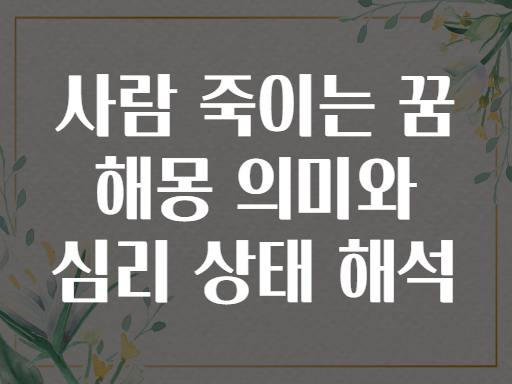 사람 죽이는 꿈 해몽 의미와 심리 상태 해석 💤🔪💭안녕하세요, 여러분! 혹시 요즘 무서운 꿈, 특히 사람을 죽이는 꿈을 꾸고 깜짝 놀라신 적 있으신가요? 🥶 왜 이런 꿈을 꾸는지, 그리고 이 꿈이 우리 심리와 잠재의식에는 어떤 메시지를 담고 있는지 궁금하지 않으신가요? 오늘은 사악해 보일 수 있지만, 실제로는 우리 내면 세계를 이해하는 데 중요한 단서가 되는 이 꿈에 대해 깊이 파헤쳐 보겠습니다! 🤯🎯 목차🧐 죽이는 꿈, 왜 꾸는 걸까?🔍 꿈 해몽: 사람을 죽이는 꿈의 다양한 해석🧠 심리 상태별 꿈 의미 분석✅ 꿈 해석 후 실생활 적용법📚 참고 자료 및 추가 읽을거리🧐 1. 죽이는 꿈, 왜 꾸는 걸까? 🤔꿈에서 사람을 죽인다는 상황 자체가 매우 극적이고 격렬한 감정을 동반하죠. 이런..