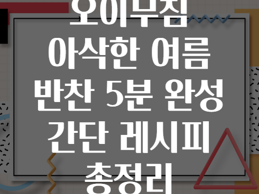 🥒 오이무침 아삭한 여름 반찬 5분 완성 간단 레시피 총정리 🌞🍴안녕하세요, 여러분! 여름철이면 꼭 생각나는 반찬 중 하나가 바로 아삭아삭 신선한 오이무침이죠? 🥒💚 끈적한 더위에 입맛 없을 때, 새콤달콤 매콤한 오이무침 하나면 밥 한 공기 뚝딱! 하고 넘어갑니다. 그런데 여러분, 오이무침 하나 만드는 데도 생각보다 재료, 양념, 방법이 다양하다는 사실 알고 계셨나요? 🤔오늘은 집에 있는 재료로 5분 만에 뚝딱 완성하는 아삭한 오이무침 꿀팁과 다양한 레시피를 소개해드리겠습니다. 간단하지만 맛있고, 건강에도 좋은 오이무침 만들기... 함께해요! 🌈🥢📋 1️⃣ 오이무침 기본 재료 및 양념 체크리스트 ✅아주 간단한 오이무침이지만, 항상 기본이 탄탄해야 맛이 돋보입니다!🥒 오이 (3개 기준, ..