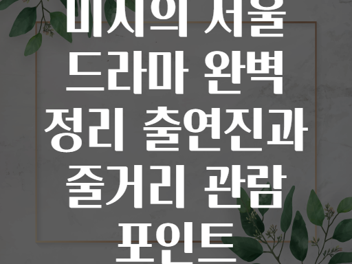 🌟 미지의 서울 드라마 완벽 정리: 출연진과 줄거리, 관람 포인트 총정리! 🎬🏙️안녕하세요! 오늘은 수많은 K-드라마 팬들의 마음을 사로잡은 서울 배경 드라마, 바로 ‘미지의 서울’에 대해 깊이 파헤쳐보려고 합니다. 🌈 '미지의 서울'은 화려한 도시의 이면과 인간 군상의 이야기를 섬세하게 그려낸 작품인데요, 드라마의 출연진부터 줄거리, 그리고 관람 포인트까지 한 번에 이해할 수 있도록 완벽하게 정리해 드립니다! 🎥🍿🤔 여러분, 이런 적 있나요?서울이라는 거대 도시를 배경으로 한 드라마를 보면서 한편으론 낯설고 또 친근한 느낌이 든 적 있지 않나요? 도시의 화려함 속에 숨은 인간 군상과 복잡한 정서를 이해하고 싶지만, 등장인물도 많고 줄거리도 복잡해 헷갈리는 경험… 🥲 이럴 때! ‘미지의 서..