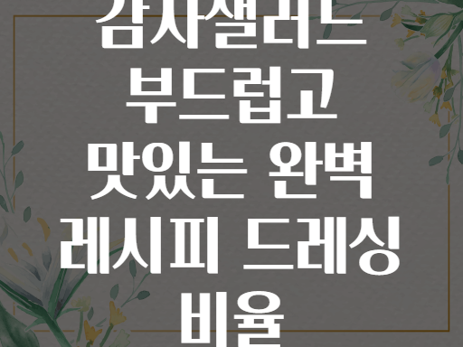 감자샐러드 부드럽고 맛있는 완벽 레시피 & 드레싱 비율 🥔🥗안녕하세요! 오늘은 누구나 한 번쯤은 집에서 만들어보고 싶은 국민 간식, 감자샐러드의 완벽한 비법을 알려드리려고 해요. 🤩 부드럽고 촉촉한 감자샐러드, 어떻게 해야 실패하지 않고 맛있게 만들 수 있을까요? 그리고 궁금했던 그 드레싱 비율까지! 🥄✨🎯 들어가기 전에: 왜 감자샐러드인가요?“왜 집마다 맛이 다를까?” 🤔“촉촉하면서도 부드러운 식감을 내는 비법은?”“드레싱 비율, 진짜 중요한가?”이런 고민이 한두 가지가 아니죠. 오늘은 그 궁금증을 속 시원히 해결해드릴게요!🍽️ 감자샐러드 완벽 레시피 총정리 📋1. 🌈 재료 준비 ✅감자 (중간 크기) 4개당근 1/2개오이 (소금에 절인 오이 추천) 1개양파 1/4개 (취향에 따라)달걀 ..