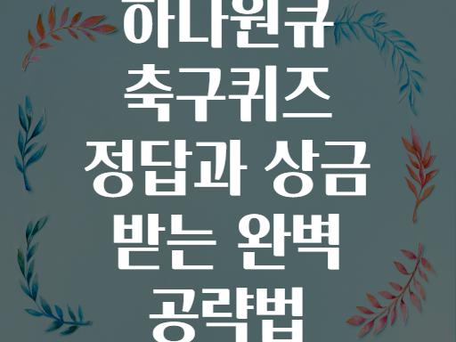 ⚽ 하나원큐 축구퀴즈 정답과 상금 받는 완벽 공략법! 💰🔥여러분, 축구 좋아하시나요? 🥅⚡ "하나원큐 축구퀴즈"에서 매일 100% 정답 맞히고 상금까지 똑똑하게 받는 방법, 궁금하시죠? ⚽💡 요즘 축구퀴즈 이벤트가 인기인데, 단순히 운에 맡기기엔 너무 아깝고, 알면 더 재미있고 쏠쏠한 꿀팁이 많답니다!오늘은 하나원큐 축구퀴즈 정답 맞히는 전략부터 상금 수령까지, 쉽게 따라 할 수 있는 완벽 가이드📚를 소개할게요. 초보자 누구나 부담 없이, 축구 덕후라면 더 즐겁게 즐길 수 있도록, 재미와 정보 다 담았어요! 🌈🎉🎯 1. 하나원큐 축구퀴즈란? – 기본 개념 및 구조 이해하기 🧠⚽✅ 하나원큐 축구퀴즈는 하나은행이 진행하는 스포츠 퀴즈 이벤트!✅ 축구 관련 문제를 전용 앱이나 홈페이지에서 풀고..