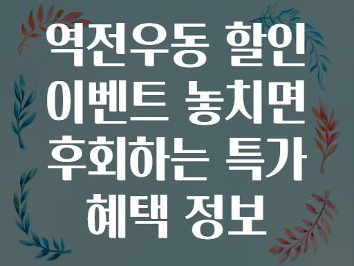 역전우동 할인 이벤트 놓치면 후회하는 특가 혜택 정보 🍜🔥🤔 여러분, 혹시 역전우동 할인 이벤트 소식 들으셨나요? 평소 우동 좋아하는 분들, 간단하지만 든든한 한 끼를 찾는 분들에게 정말 반가운 소식입니다! 이번 특가 혜택, 놓치면 후회할 만큼 알찬 이벤트가 진행 중이라 심쿵주의보! 🥢😋🌟 역전우동 할인 이벤트, 왜 이런 기회를 놓치면 안 될까요?역전우동은 전국에 지점이 많은 대표 트렌디한 분식 브랜드로, 최상의 식재료와 감각적인 메뉴 구성으로 이미 많은 사랑을 받고 있어요. 🍲이번 할인 이벤트는 특별히 더 많은 고객께 부담 없이 맛있는 우동을 즐길 수 있도록 준비한 만큼, 기간 한정 특가로 많은 분들이 달려왔죠!✅ 최근 조사에 따르면, 2024년 국내 외식 프랜차이즈 할인 행사 중 고객 만..